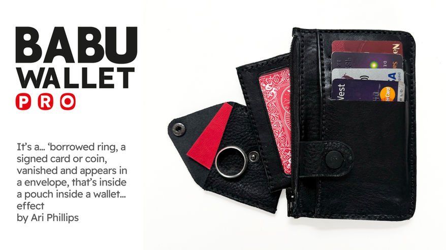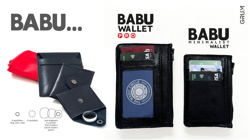 Babu, the sell out nest of wallets...beautifully crafted leather pouches with a deceptive method for loading the ring, coin or any small object into a pouch, inside a pouch, inside a pouch..and even inside a sealed envelope too!